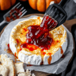This Halloween Bloody Baked Brie is the perfect spooky appetizer to wow your guests! Its eye-catching presentation and delicious flavor make it ideal for Halloween parties, potlucks, or any festive gathering. The creamy brie, combined with the vibrant red pepper jam, creates a dish that is both eerie and delightful.