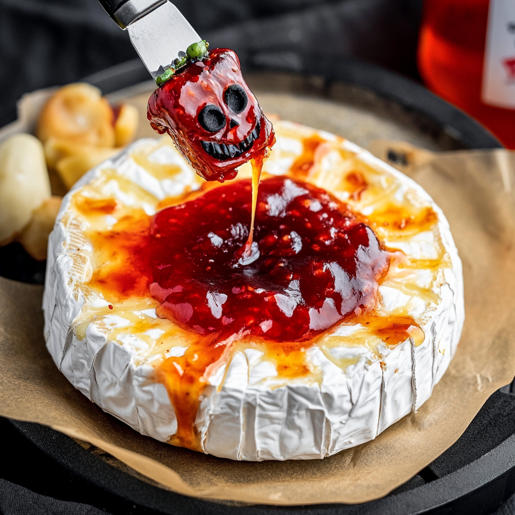 - Add fresh herbs like rosemary or thyme on top of the brie for a pop of color and aroma. This adds an elegant touch to your spooky dish.