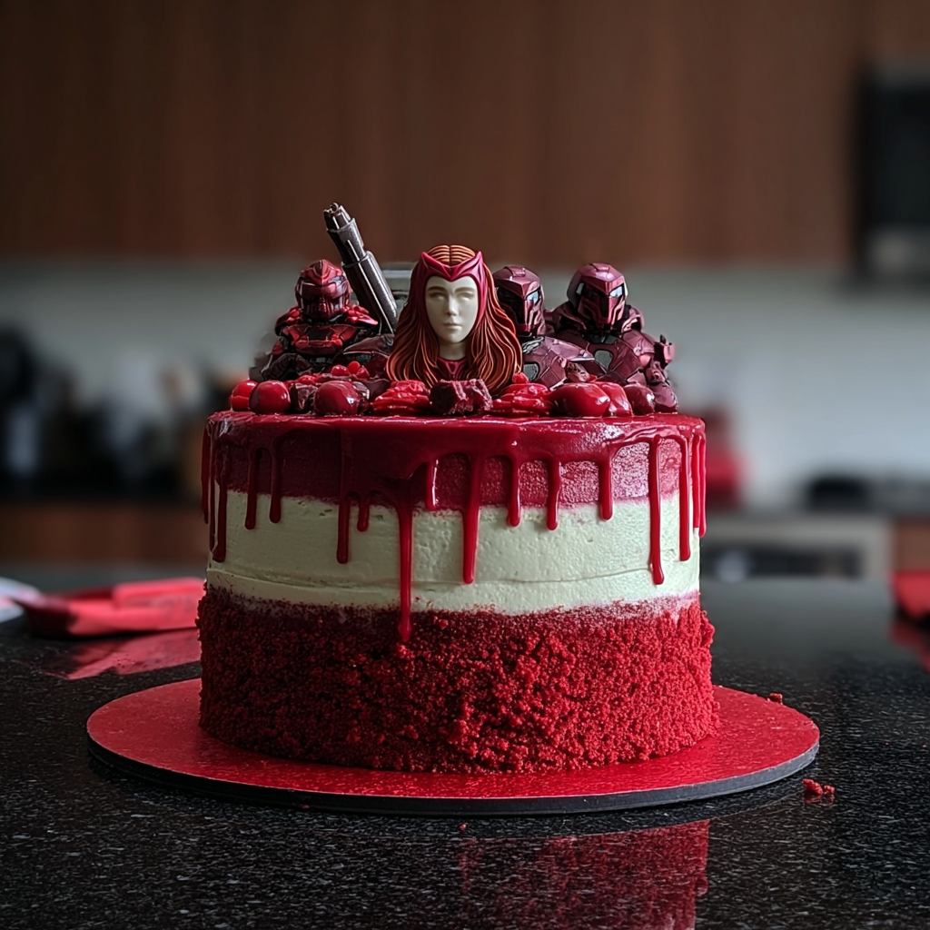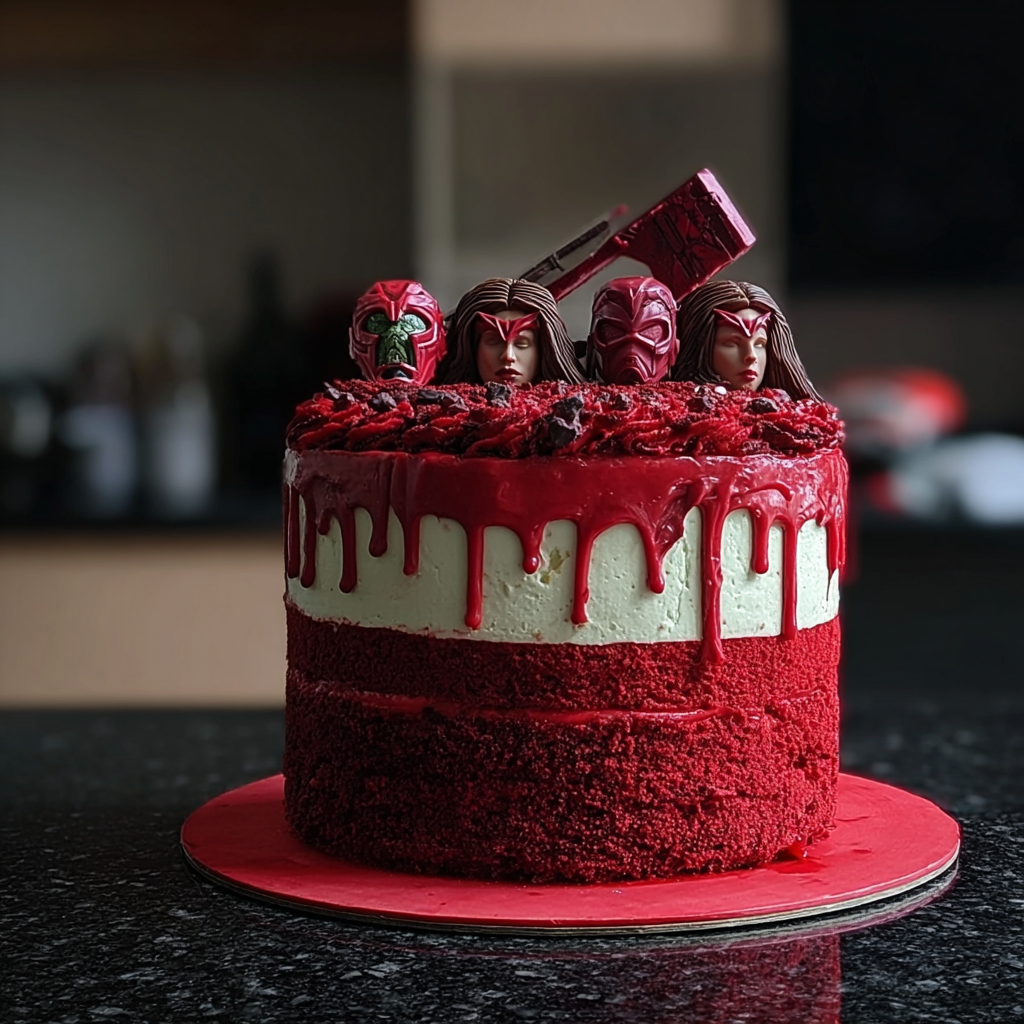 Indulge in the Marvel Cinematic Universe Wanda’s Scarlet Witch Red Velvet Cake, a stunning dessert that enchants with its vibrant red hue and rich flavors. This delightful cake is perfect for celebrations, movie nights, or simply impressing your guests. Its velvety texture combined with luscious cream cheese frosting creates an unforgettable treat that embodies the enchanting spirit of the Scarlet Witch. Easy to prepare and customizable, this cake will be a showstopper at any gathering.